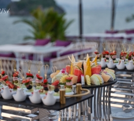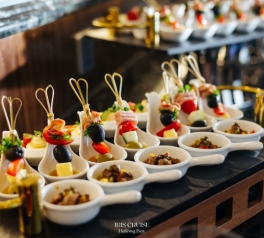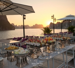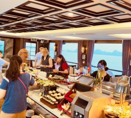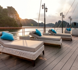 18:30 - 19:15 Thưởng thức các món khai vị nhẹ nhàng và thưởng ngoạn cảnh đẹp Hạ Long hoặc giao lưu trò chuyện trên sundeck.