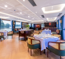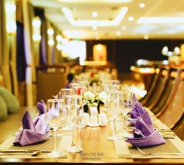 Iris Cruise thuộc thế hệ du thuyền 99 chỗ vỏ sắt mới nhất sở hữu hàng loạt chuỗi các tiện ích đẳng cấp phục vụ du khách, trong đó có thể kể đến 2 nhà hàng theo phong cách Á – Âu phục vụ thực đơn buffet phong phú đa dạng, bể sục Jacuzzi ngoài trời và boong tắm nắng… Du thuyền Iris Cruise thực sự là một kiệt tác sống động trên biển mang đến du khách sự lựa chọn hoàn hảo cho hải trình tham quan vịnh Hạ Long trong ngày.